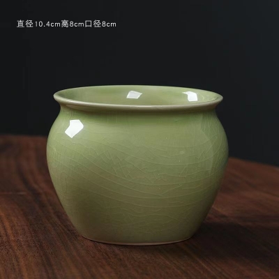 陶瓷哥窑开片水培小花盆 绿色 小清新水培